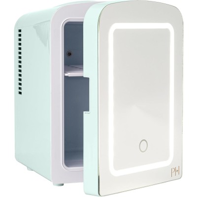 Mini Refrigerator and Personal Beauty Fridge, Mirrored Door with Dimmable LED Light, Thermoelectric Cooling and Warming Function for All Cosmetics and Skincare Needs, 4-Liter, Pink